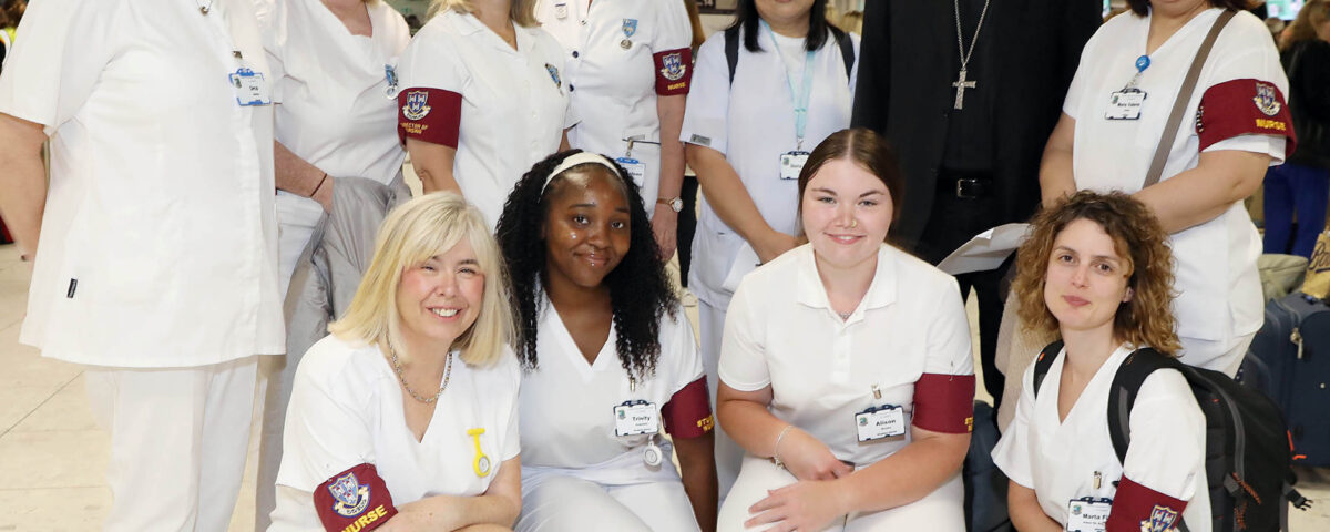 Archbishop Farrell with some of the nurses at Dublin Airport