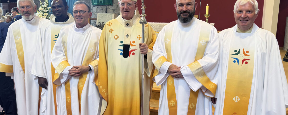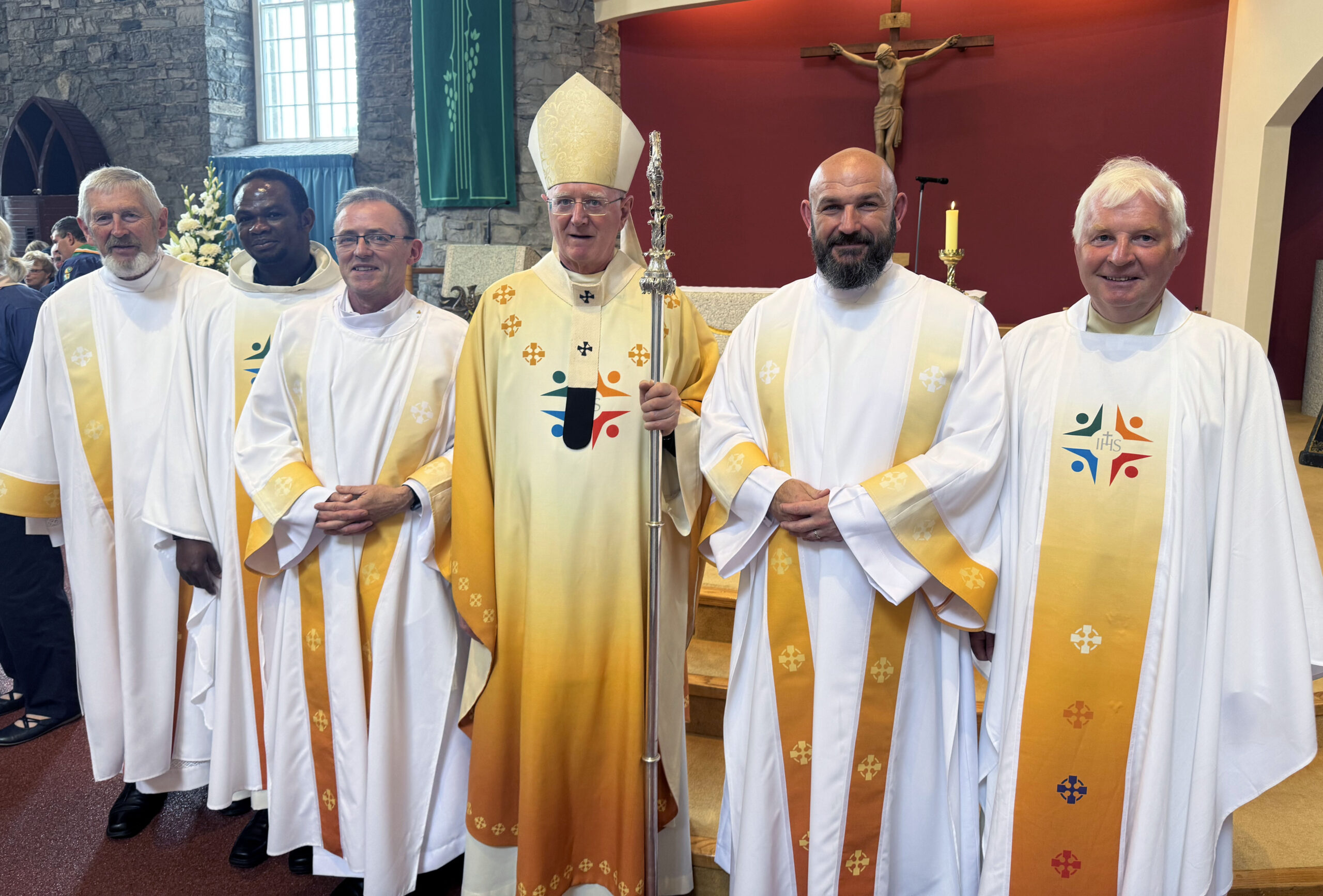 Deacon Noel Ryan, Fr George Adzato SVD, Deacon John Gormley, Archbishop Dermot Farrell, Deacon Arcadiusz Lenkiewicz and Fr John Gilligan at St Mary’s Church, Lucan
