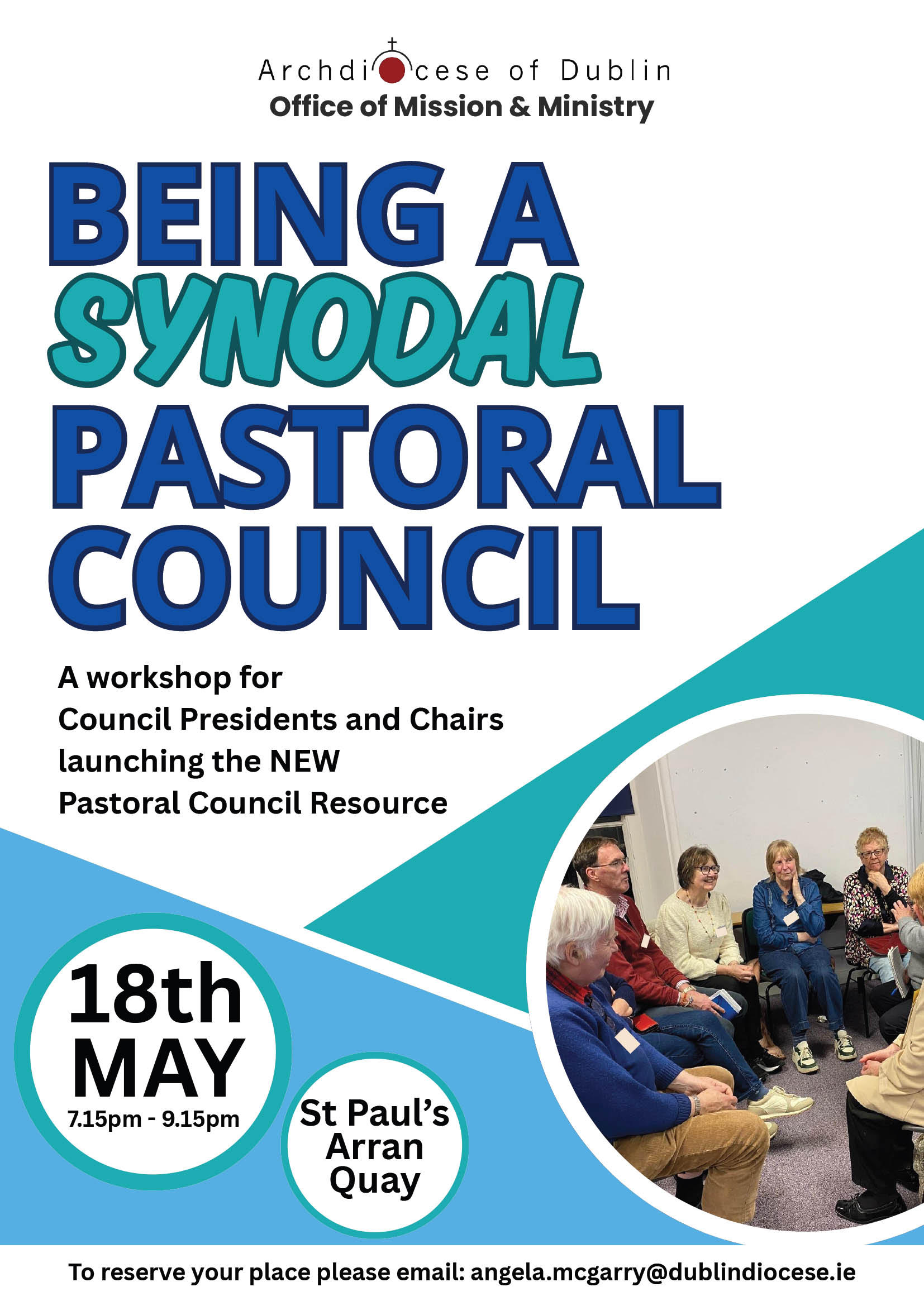 St Paul's Church Arran Quay, Dublin 7Presidents and Chairs of Pastoral Councils are invited to St Paul's, Arran Quay, to a workshop on May 18 at 7.15pm, where a new Diocesan Resource will be launched. This new resource will help Pastoral Councils to grow in their ministry to Parish and Pastoral Areas. To register for a place, please contact angela.mcgarry@dublindiocese.ie.