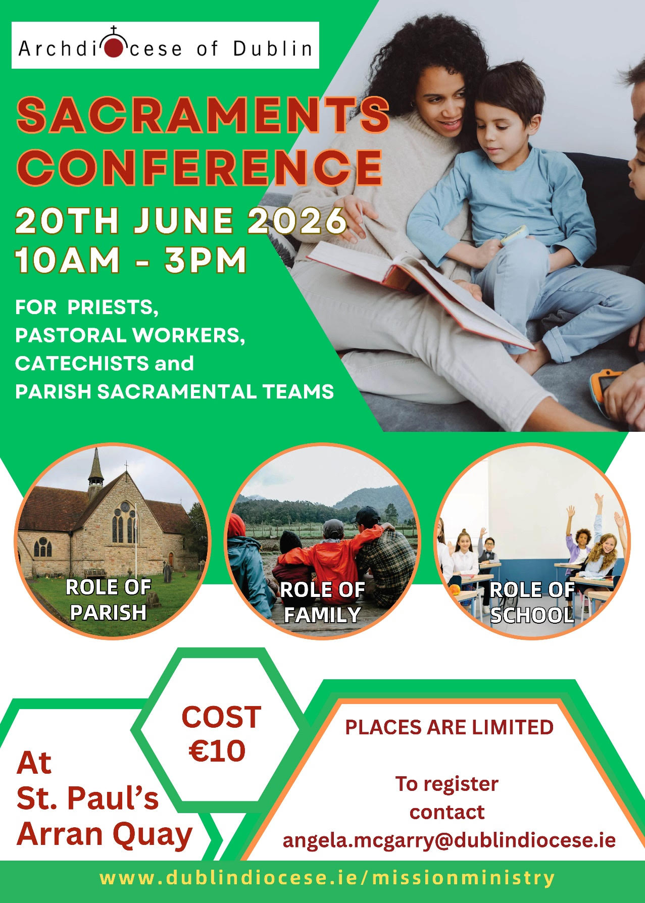 St Paul's Church Arran Quay, Dublin 7This year's conference explores the various roles of Parish, School and Family as we accompany families on the journey of Sacramental Preparation. All priests, parish pastoral workers, catechists and parish sacramental teams are warmly invited. It takes place on June 20 from 10am to 3pm at St Paul’s, Arran Quay. Cost €10 per person. To register […]