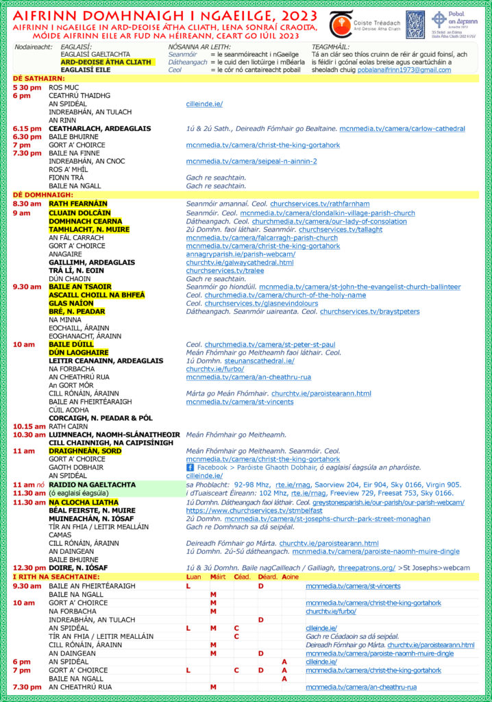 SCEIDIL AIFRINN / MASS SCHEDULES :