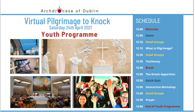 Please join us for the online Dublin Diocesan Pilgrimage to the International Eucharistic and Marian Shrine at Knock will take place this Saturday April 24th. For the second year, it will be a virtual pilgrimage.