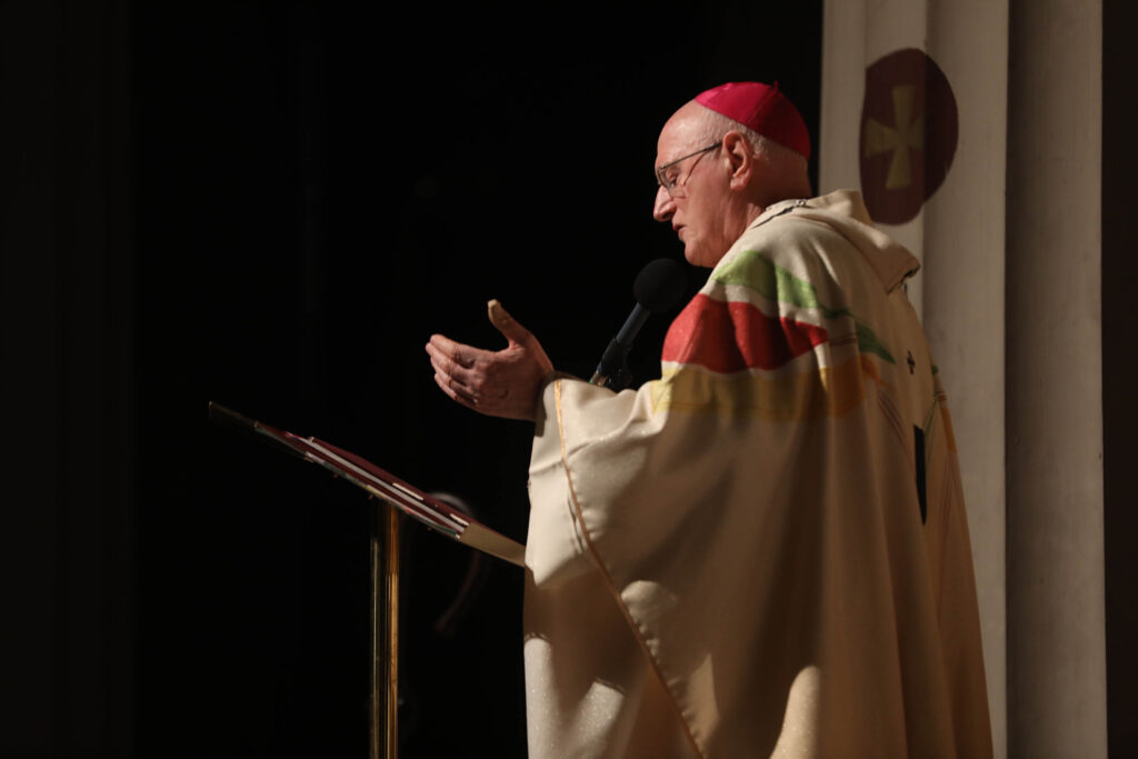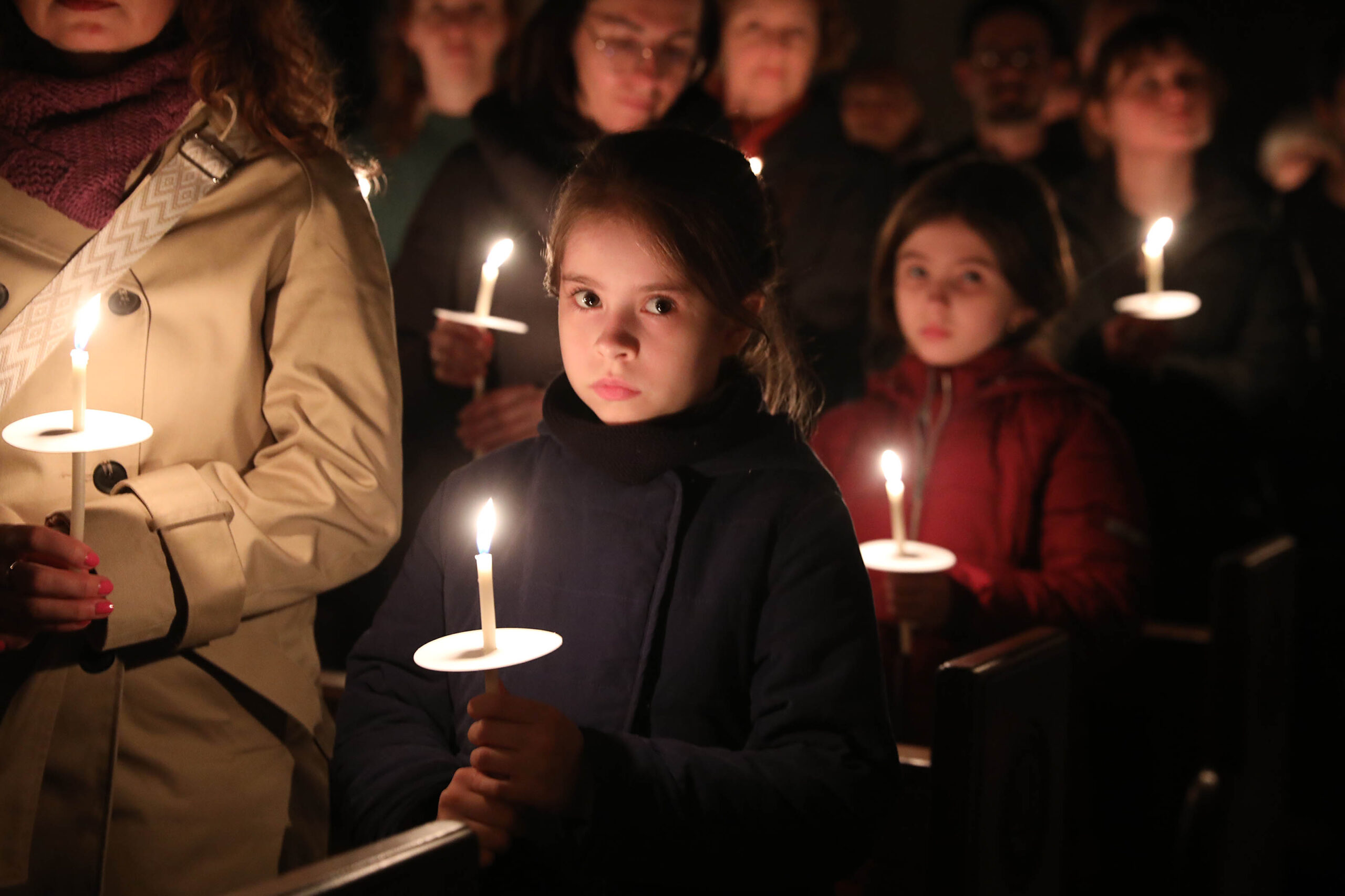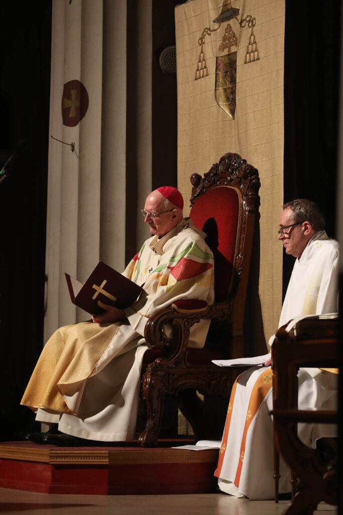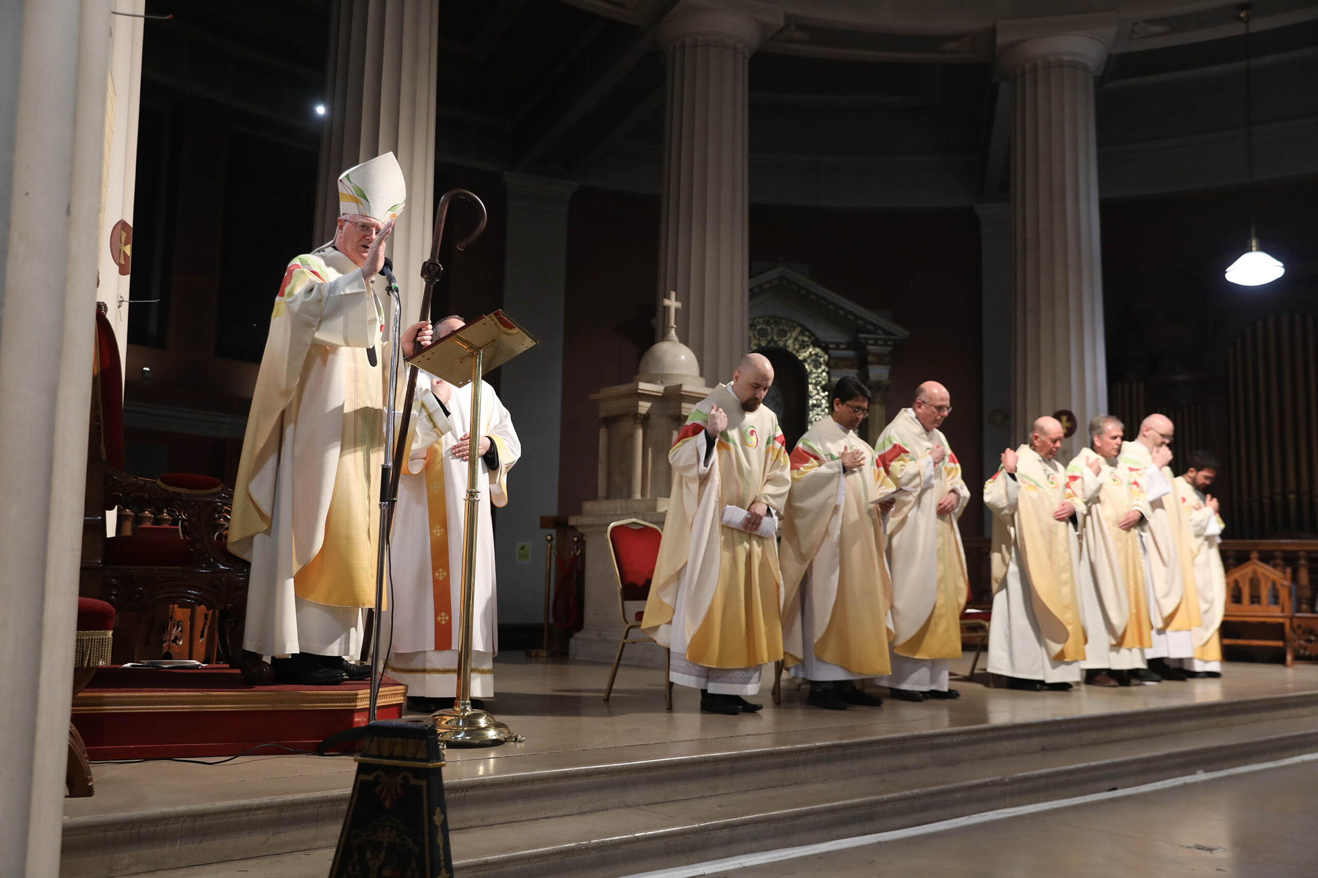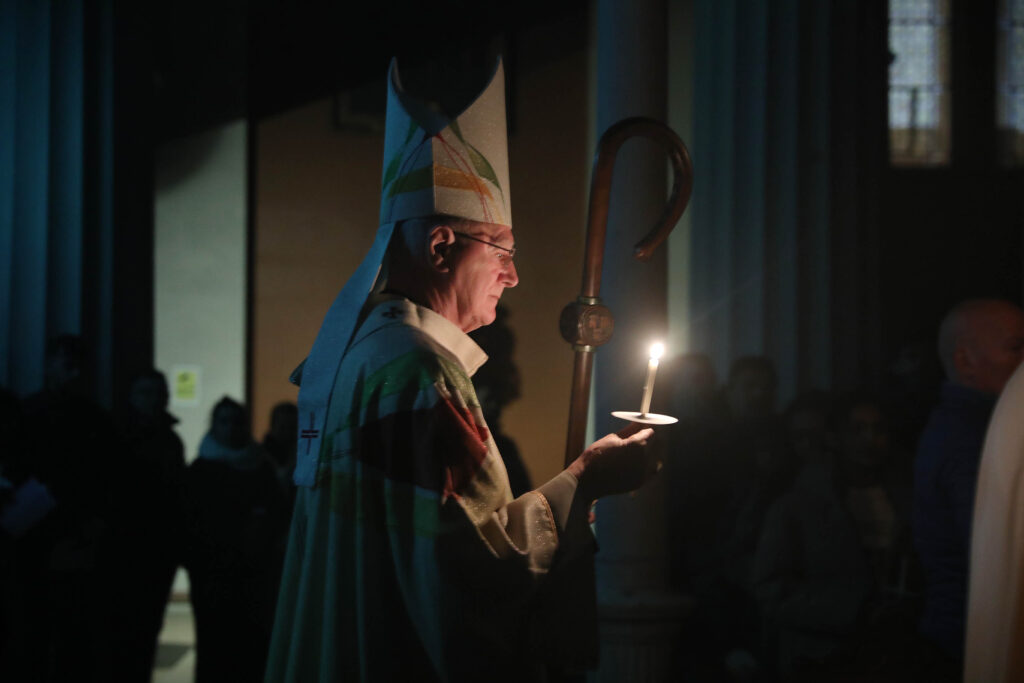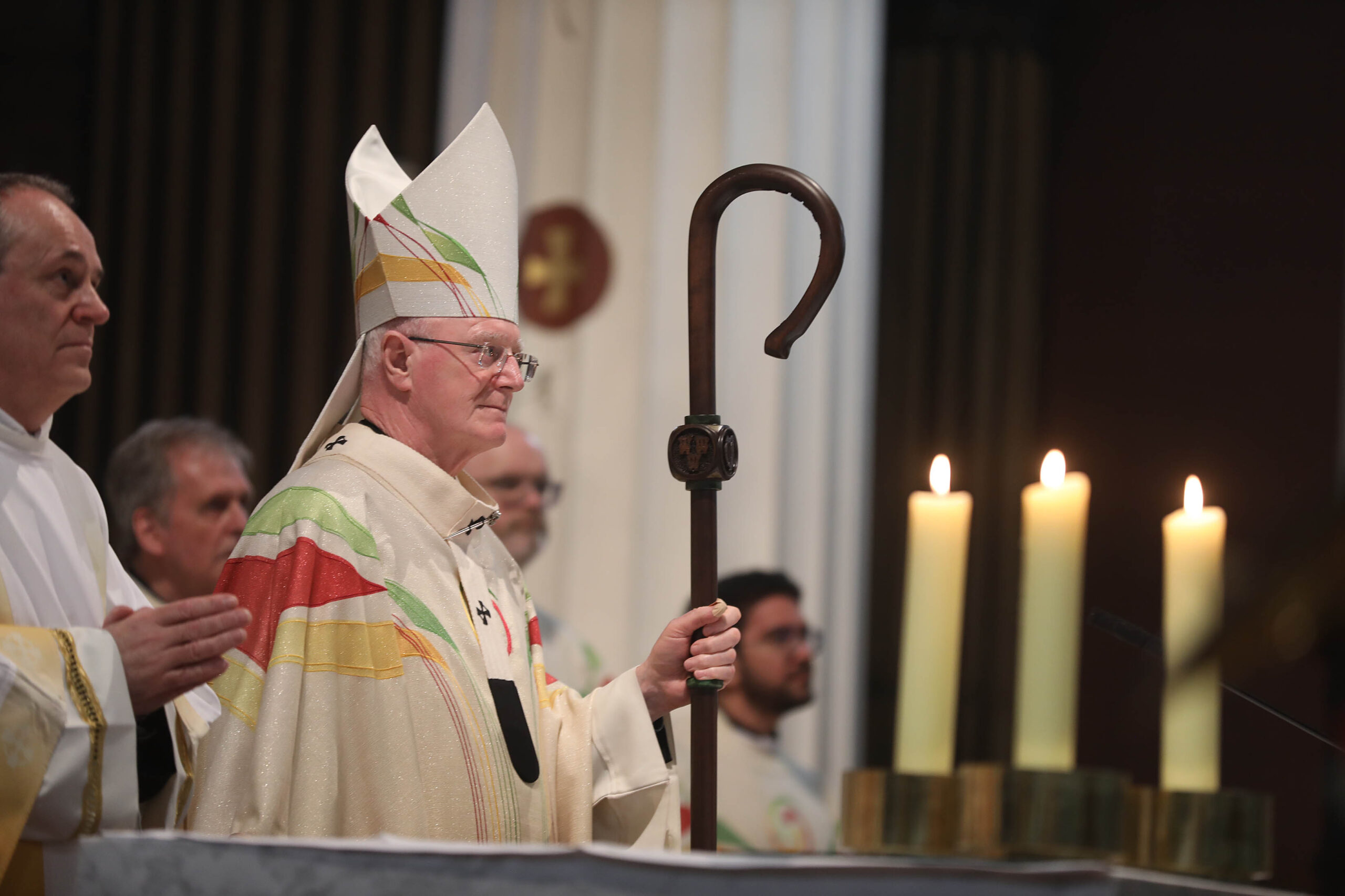 Archbishop Farrell led the celebration of the Easter Vigil in St Mary’s Cathedral, Dublin. The ceremony began with the lighting of the Paschal fire at the entrance to the Cathedral, where the Archbishop was assisted by Deacon Thomas Groves. During the Mass, three catechumens were baptised and confirmed into the Catholic faith: Zhao Zhang, who was baptised with the Christian name Thomas, Mamadu Sow, baptised with the Christian name John, and Charlie Pooley. Two other candidates also received the sacrament of Confirmation. The Palestrina Choir provided the music for this joyful celebration of Christ’s Resurrection.