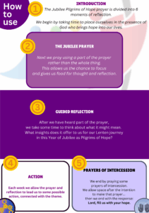 This Lent we are inviting people to spend time praying with and reflecting on the Jubilee Pilgrims of Hope Prayer.