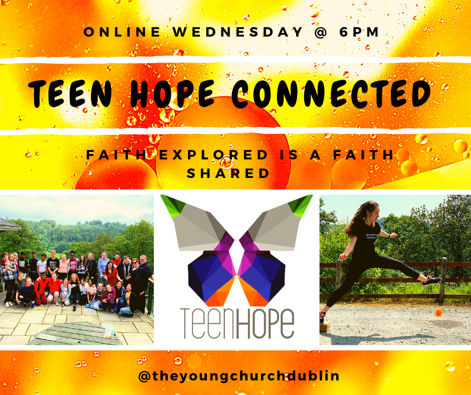 Teen Hope Connected is a weekly Youth Group. It takes place every Wednesday 6-7pm via Zoom. Join us for fun, exploring faith and life with other Teens through small group discussions, top class games and prayer. If you are interested in joining, please email: kirsten.mahon@dublindiocese.ie