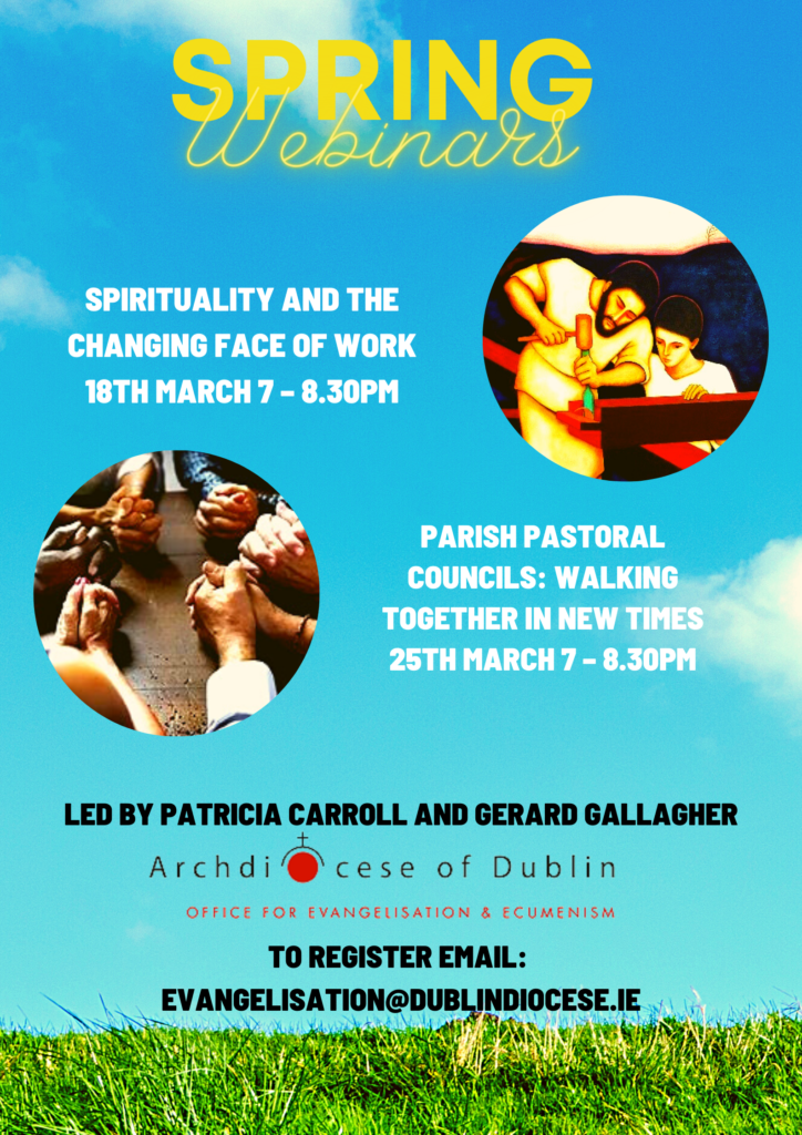 - The second of the spring webinars on the 25th March at 7pm is an opportunity for Parish Pastoral Councils to explore what are the needs and concerns emerging in parish life and ways to appropriately pastorally respond by walking together in these changing times. Ideal for new members.