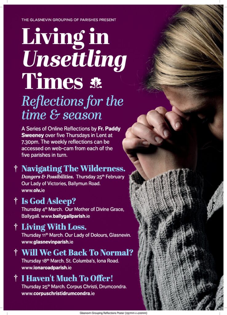 The Glasnevin Grouping of Parishes are doing a series of online reflections by Fr Paddy Sweeney over Thursdays in Lent. Each session will start at 7:30pm and can be accessed by webcam.