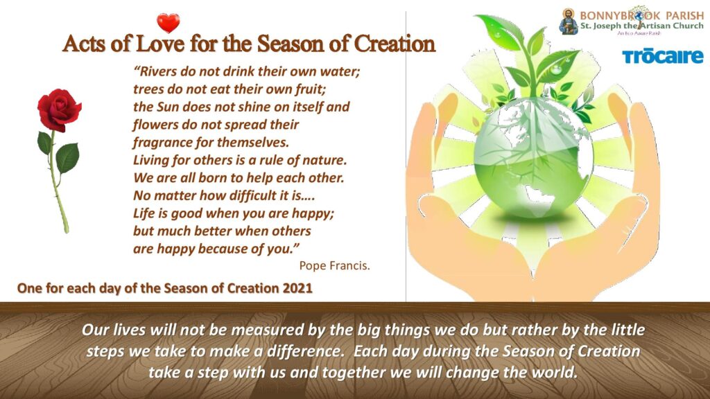 The theme for the Season of Creation 2021 is ‘Restoring Our Common Home’. During this season we are asked to join together to celebrate creation and protect our common home through prayer, reflection and action.