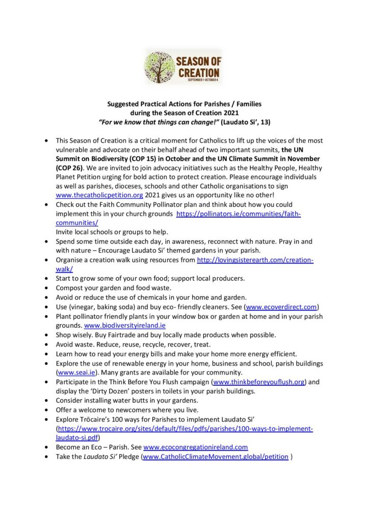This year we celebrate this season mindful of the fact that our world continues to deal with the Covid-19 pandemic as well as a devastating climate and biodiversity crisis. We look towards two UN Conferences in the Autumn, COP15 (on Biodiversity, due to take place in China) and COP24 (on climate change, Glasgow) in the hope that world leaders take the urgent action that is needed to Restore Our Common Home. Catholics are urged to sign the “Healthy Planet Healthy People” petition as a key action for this year’s Season of Creation. This petition has been endorsed by the Vatican Dicastery for Integral Human Development in the hope that millions of Catholics will raise their voices in the public sphere to help Restore Our Common Home in the run up to these vital UN Conferences.